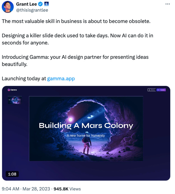Why did he create Gamma? Because creating slides and fiddling with design sucks. In his words: